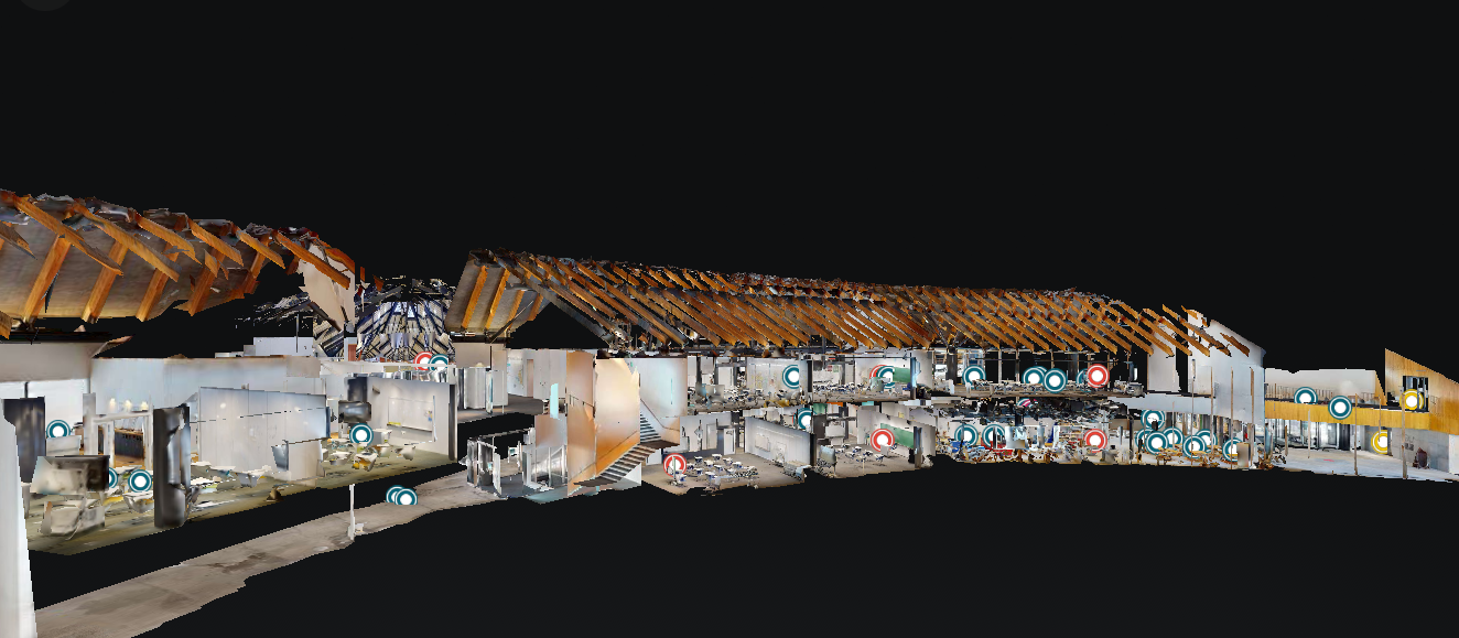 国際高等専門学校ではこのたび、白山麓キャンパス校舎内を米国のMatterport社(マーターポート社)製「Matterport Pro2 3Dカメラ」を使って3D VR化したコンテンツをWeb上で公開しました。当コンテンツは国際高専1、2年生の学生プロジェクトにより作成されたもので、仮想空間上に表示された白い円をマウスで操作するとストリートビューのように校舎内を自由にウオークスルーができるほか、空間内の各スポットに置かれた風船のようなタグをクリックすることで、解説や授業風景などの動画もご覧になれます。