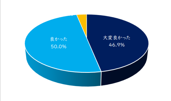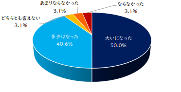 「大いになった」が50%、「多少はなった」が約41%で、ほとんどの学生が、将来の学修や進路を考えるうえでの気づきやきっかけになったと答えました。