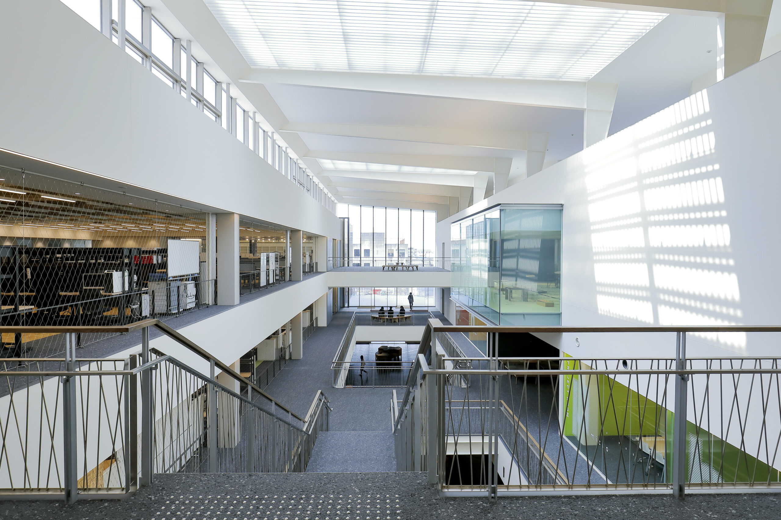 キャンパスの動線を建物中央の3層を貫く吹き抜けとなる約130mのパサージュ(大通り)に集約し、より開放的でオープンイノベーションな環境を可能にすることで、キャンパス全体の活性化を促します。