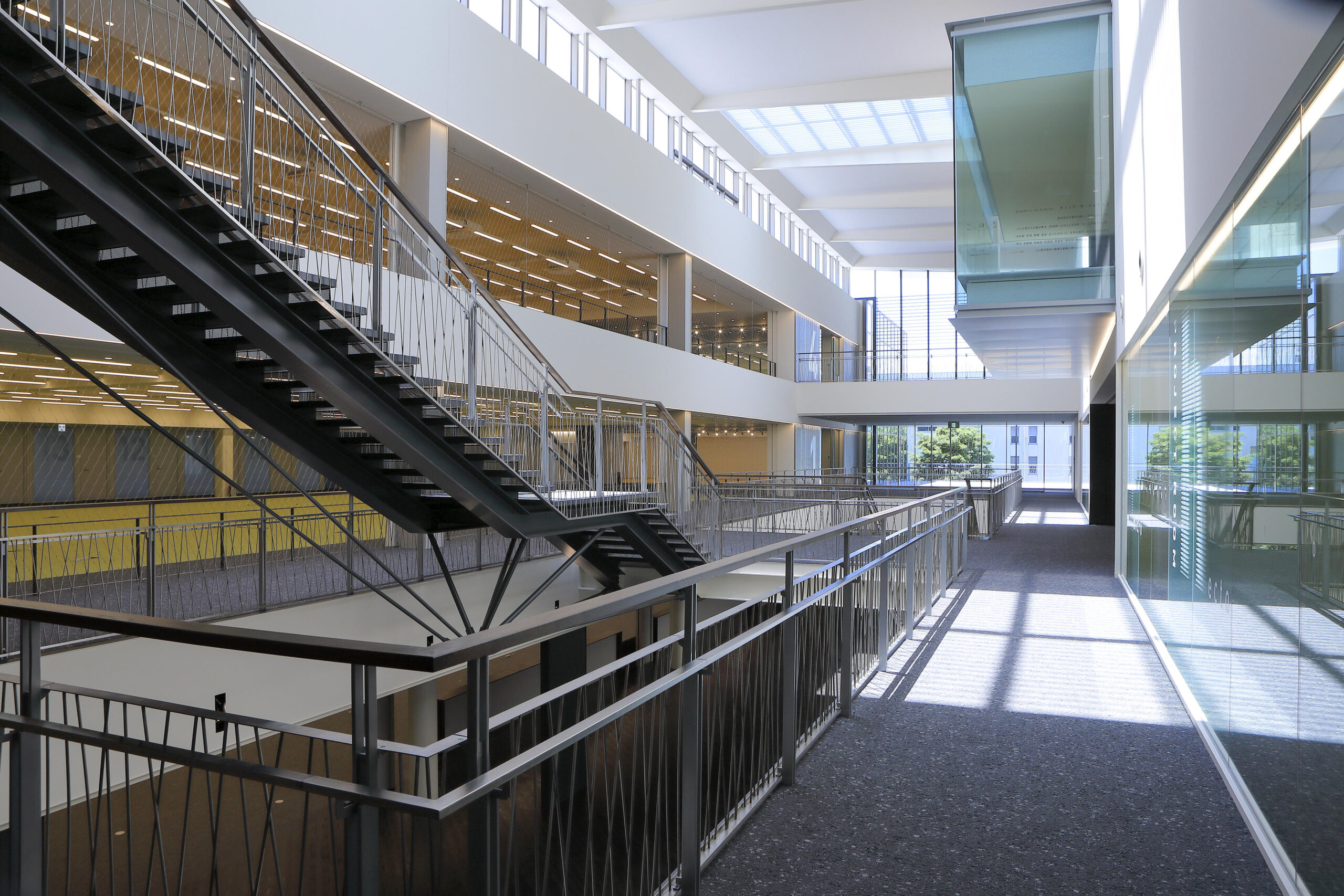 寝屋川キャンパスの中央に建設された「OECUイノベーションスクエア」は、地上3階、延べ床面積約18,000m2の教育施設で、1階は学生支援の窓口・事務室エリア、2・3階には教員室や研究室など教育研究施設エリアを設置しています。
