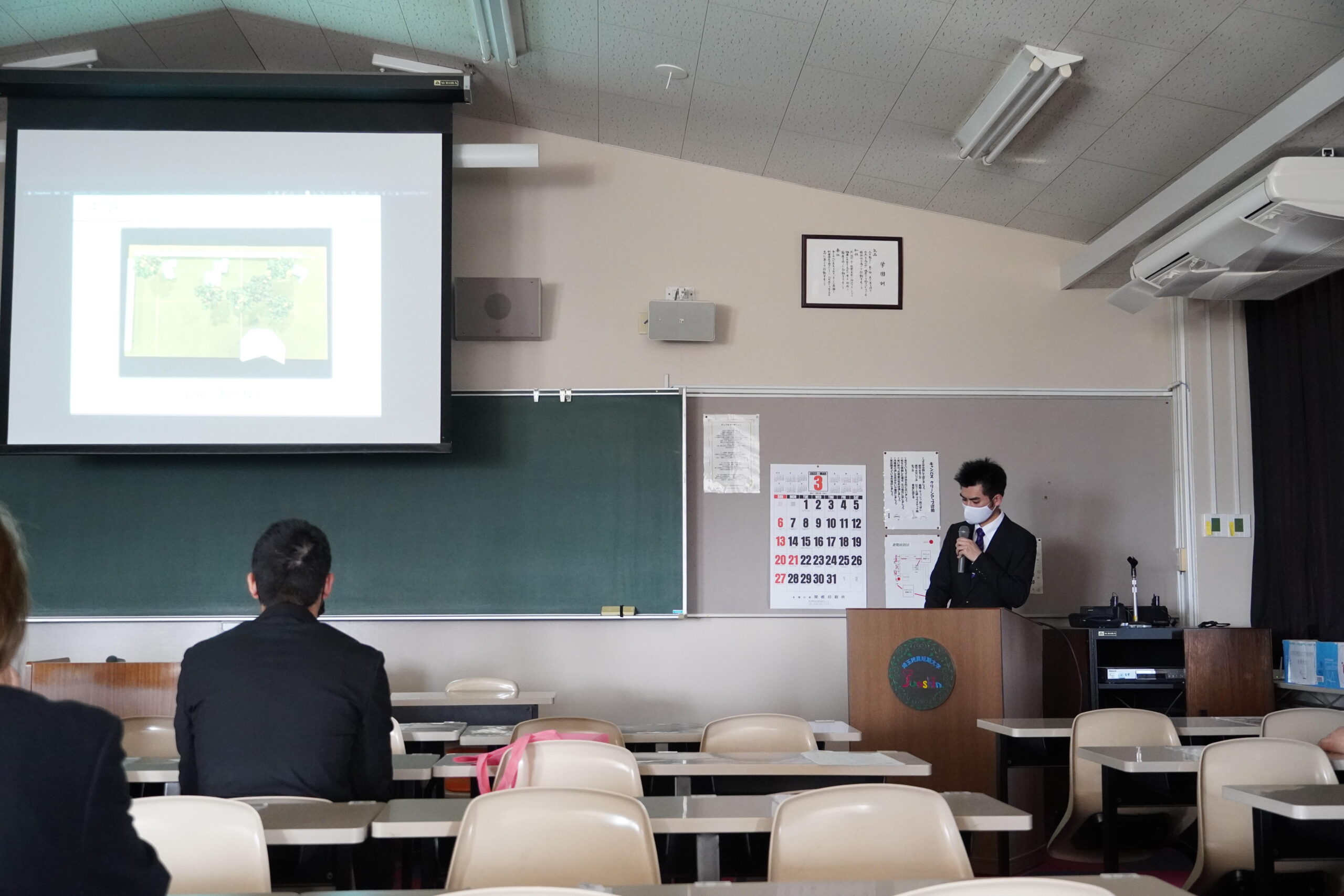 2022年3月10日(木)、埼玉純真短期大学においてキッズハウスの完成披露が行われました。両大学の学長、教職員、学生等関係者が出席し、学長、指導教員からの挨拶や、学生の共同研究発表が行われました。