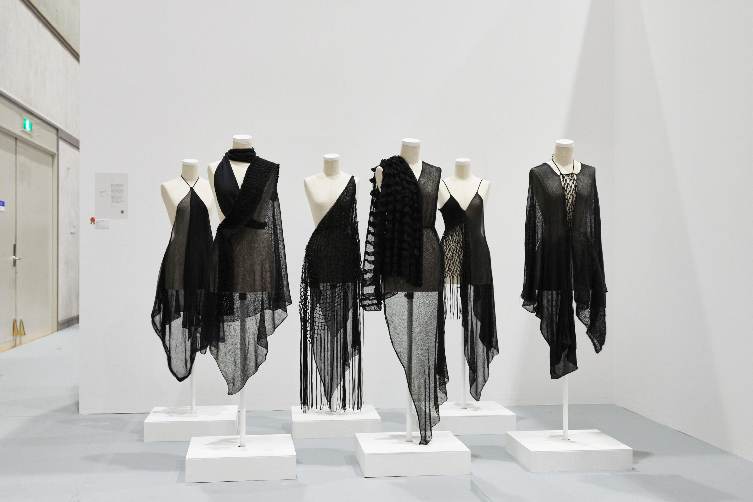 『”』という記号は、「開始」と「終了」の二つの意味を持ちます。大学は、学生たちのテキスタイルの学びの「開始」地点であり、卒業は「終了」の節目であり、新たな生活の「開始」になります。学生たちは大学生活の中でさまざまな「開始」「終了」を繰り返し、その集積が卒業制作に繋がっています。