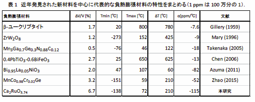 負熱膨張材料2)は、材料の熱膨張を抑制・制御できるため、温度による形状変化を極端に嫌う精密光学部品はじめ各種精密機器に利用される他、最近ではファイバー・グレーティングと呼ばれる光フィルターの性能安定化に貢献するなど、さまざまな分野で活用されている。しかし、これまで実用の負熱膨張材料は、β-ユークリプタイトなど、ごくわずかな例に限られていた。