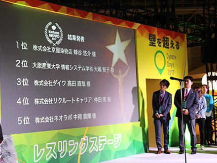 「kintone AWARD 2017」は、サイボウズ株式会社のビジネスアプリ作成プラットフォーム「kintone」(※)ユーザーの中からこの1年で最もキラリと光る活用をした企業を表彰するコンテスト。エントリーの中からweb投票で選出されたファイナリストが、11月8日~9日に幕張メッセで開催された「Cybozu Days 2017」内でプレゼンテーションを行った。