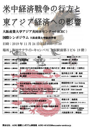 大阪産業大学アジア共同体研究センターが11月24日にシンポジウム「米中経済戦争の行方と東アジア経済への影響」を開催