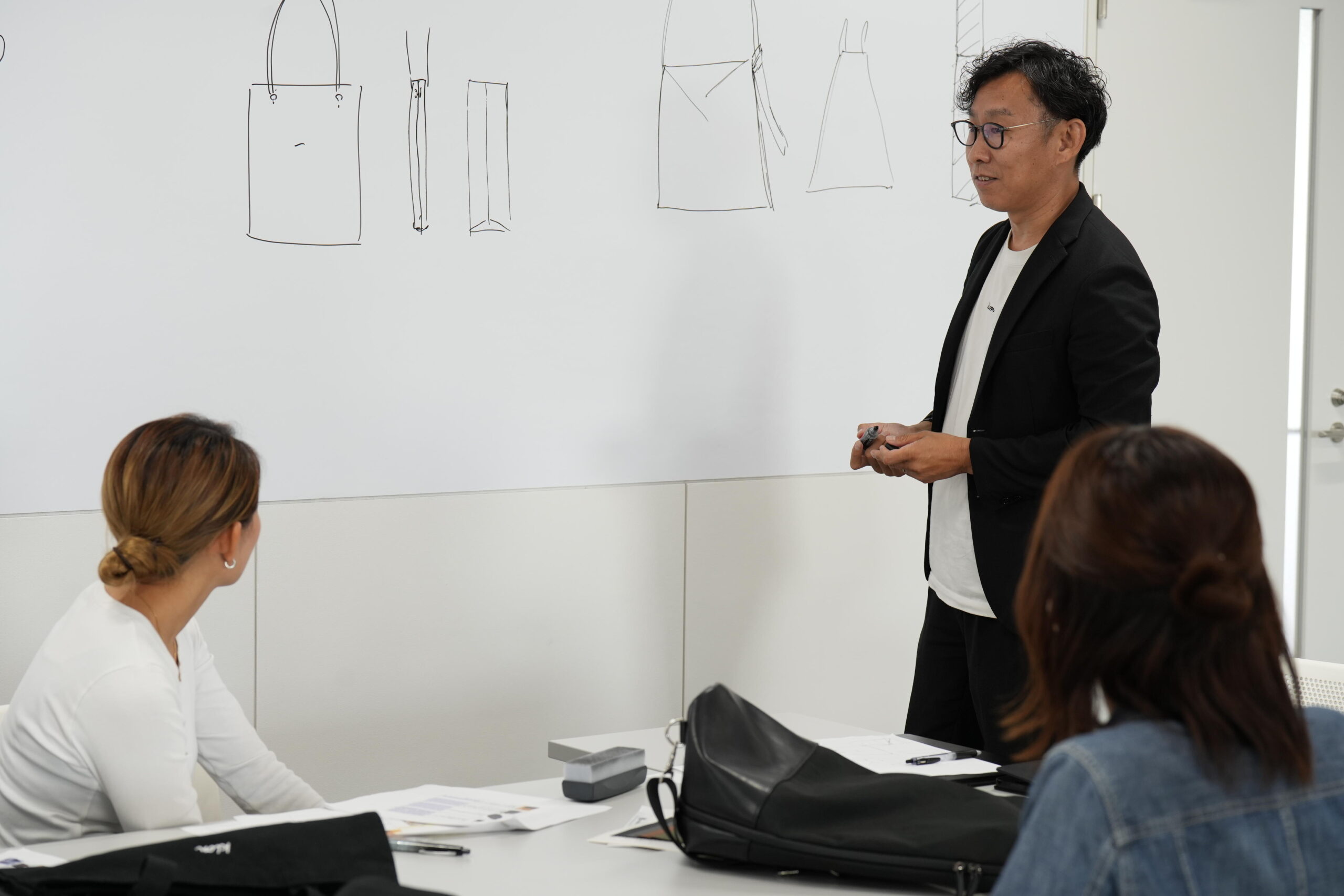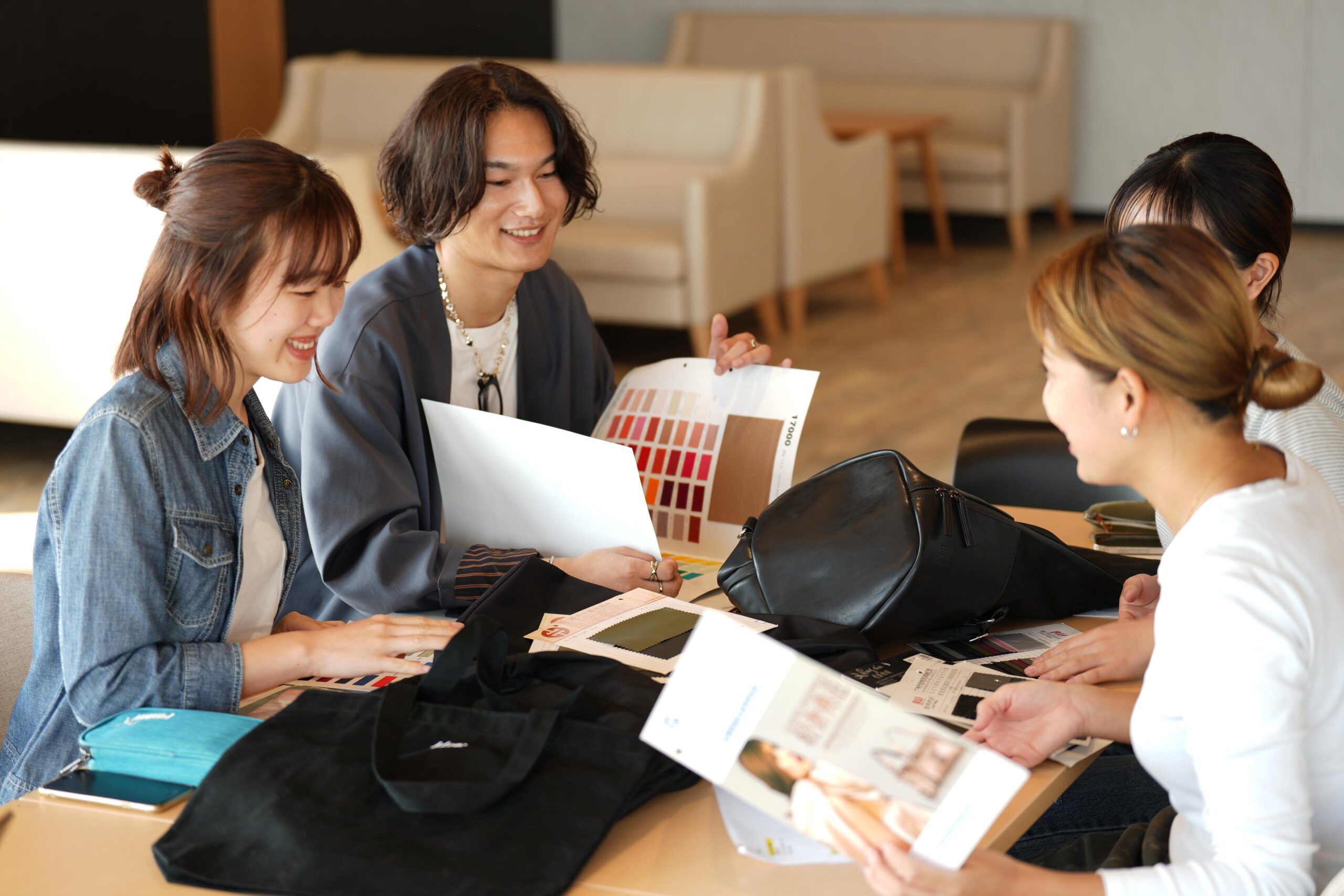 KLONを運営する株式会社タイタン・アートの代表取締役 米原太一氏も加わり、「大学生が本当に使いたいバッグ」をテーマに、形や色、素材、機能性など、様々な意見を交えながらバッグのジャンルや方向性を決めていった。