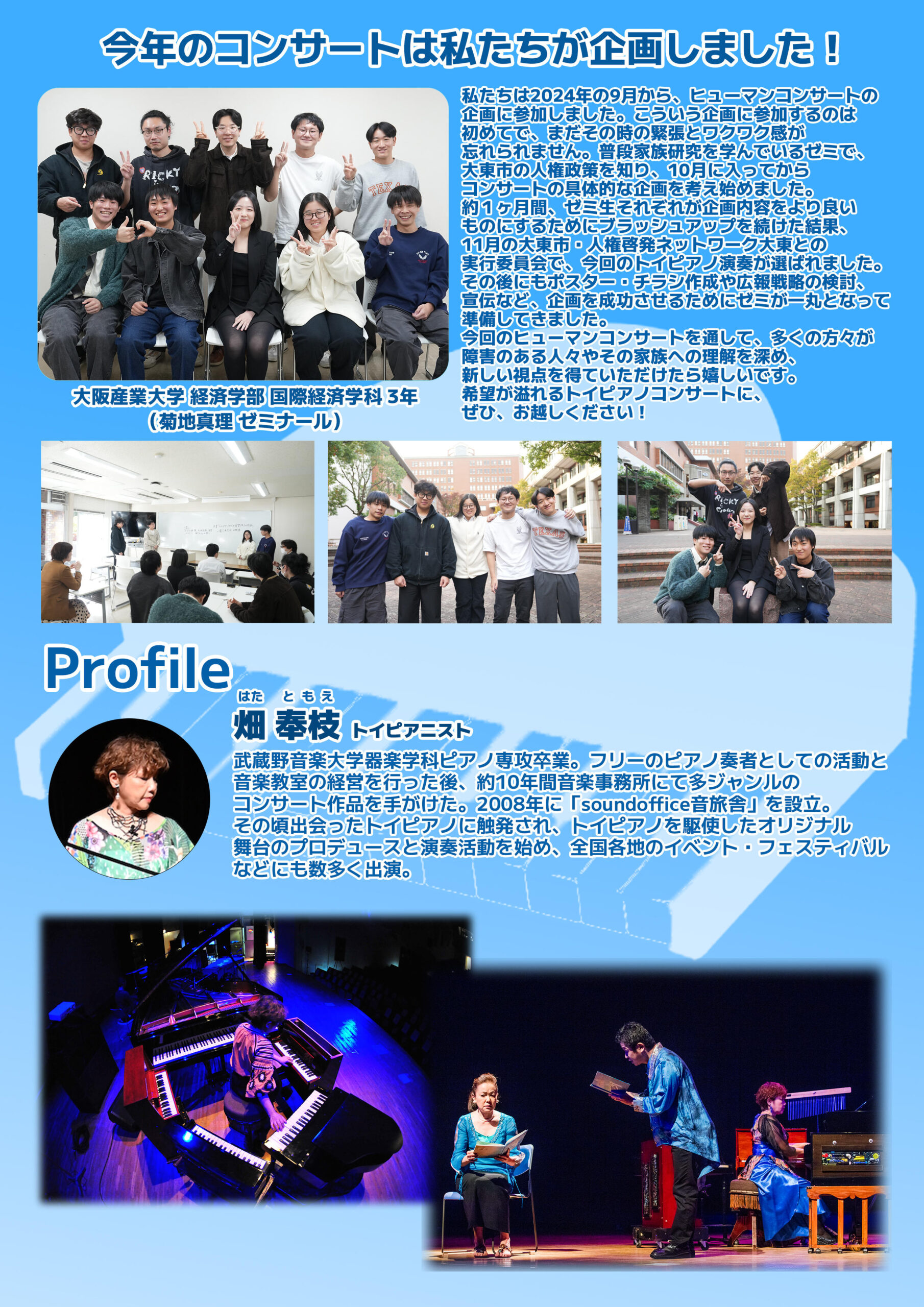 【大阪産業大学】経済学部 菊地ゼミの学生が企画・運営する2025ヒューマンコンサートが開催されます!