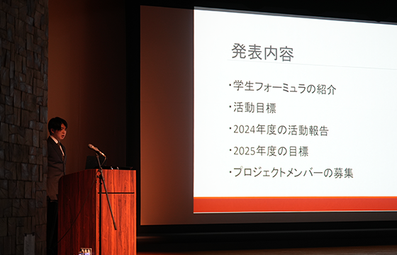 ・学生フォーミュラプロジェクト:学生が製作したレーシングカーの開発やレース参戦の成果について報告しました。