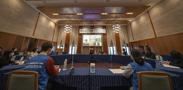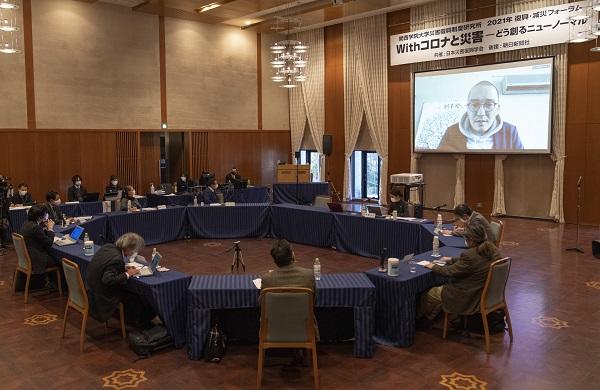 地震や水害など過去の被災地の経験やその中で得られた知恵を共有する「2021年復興・減災フォーラム」が1月9、10日、関西学院西宮上ケ原キャンパスの関西学院会館で開かれました。関西学院大学災害復興制度研究所が毎年開催しているもので、今年は新型コロナウイルスの感染拡大が収まらないなか、「Withコロナと災害~どう創るニューノーマル」をメーンテーマに、9日に全国被災地交流集会「円卓会議」、10日に基調講演とパネル討論を行いました(日本災害復興学会共催)。発言者や講師の一部はオンラインで参加し、2日間合わせて延べ約250人(Zoom聴講者も含む)が聴き入りました。