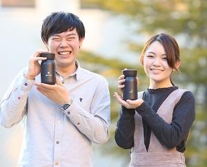 オリジナルマイボトルは4月からKSCの学生限定で販売する予定です。容量は350mlで販売価格は2,250円。開発プロジェクトに携わった和田雄介さん(理工学部4年生)、井上沙紀さん(総合政策学部2年生)は「卒業後も使用したいと思えるデザインの実現を軸に議論を始めた。KSCは自動車通学の学生が多いことから車のドリンクホルダーに入る大きさにしようとか、SNSでも自慢したくなるけど社会人になっても使える落ち着いたオシャレさを追求しようといった声があった」とデザイン決定までのプロセスを紹介。このプロジェクトへの思いとして、「マイボトルの取り組みが他大学などにも広がれば、ペットボトルの消費量を大きく減らすことができる。大きな意味を持つプロジェクト。今後は『エコの輪』がKSCを越えて広がっていくことに期待したい」と話しました。