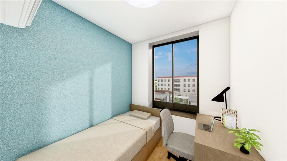 充実した設備を擁する個室や共用リビングに加え、ダンススタジオ、音楽スタジオ、シアター、和室、ラーニングルーム、シェアキッチンルーム、カフェテリアなど、グループで自由に利用できる多彩な空間も設置している。
