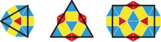 今回堂寺らは、小正三角形、大正三角形、長方形の3種類のタイルを使って青銅比に基づく自己相似な6回の回転対称性を持つタイリングを発見した。さらに、分子シミュレーションを用いて、実際に青銅比準結晶ができることも示した。