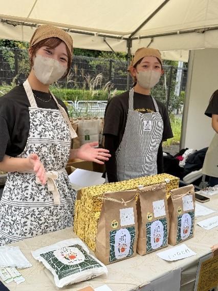 ヤマザキ動物看護大学(東京都八王子市、山﨑薫学長)は、11月1日・2日に開催された学園祭「絆祭」にて、福島県矢吹町との地域連携プロジェクトから誕生したブランド米「カブトエビと育むやぶきのお米」を販売しました。当日は、プロジェクトに参加した学生たち自らが活動内容を紹介し、新米とおにぎり弁当を提供。来場者からは「美味しい」との声が多く寄せられ、大好評の販売となりました。今回の販売を通じて、多くの方々にこのお米の魅力が伝わり、今後さらに新たなつながりが広がっていくことが期待されます。