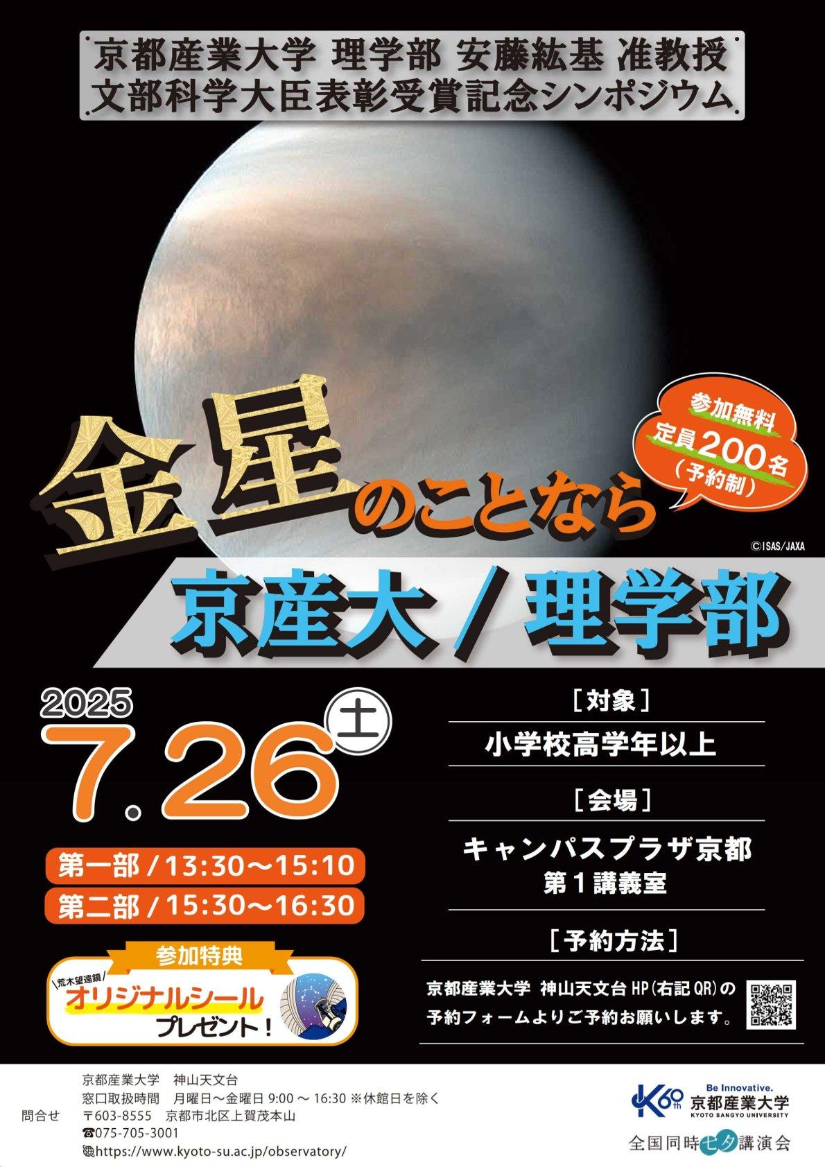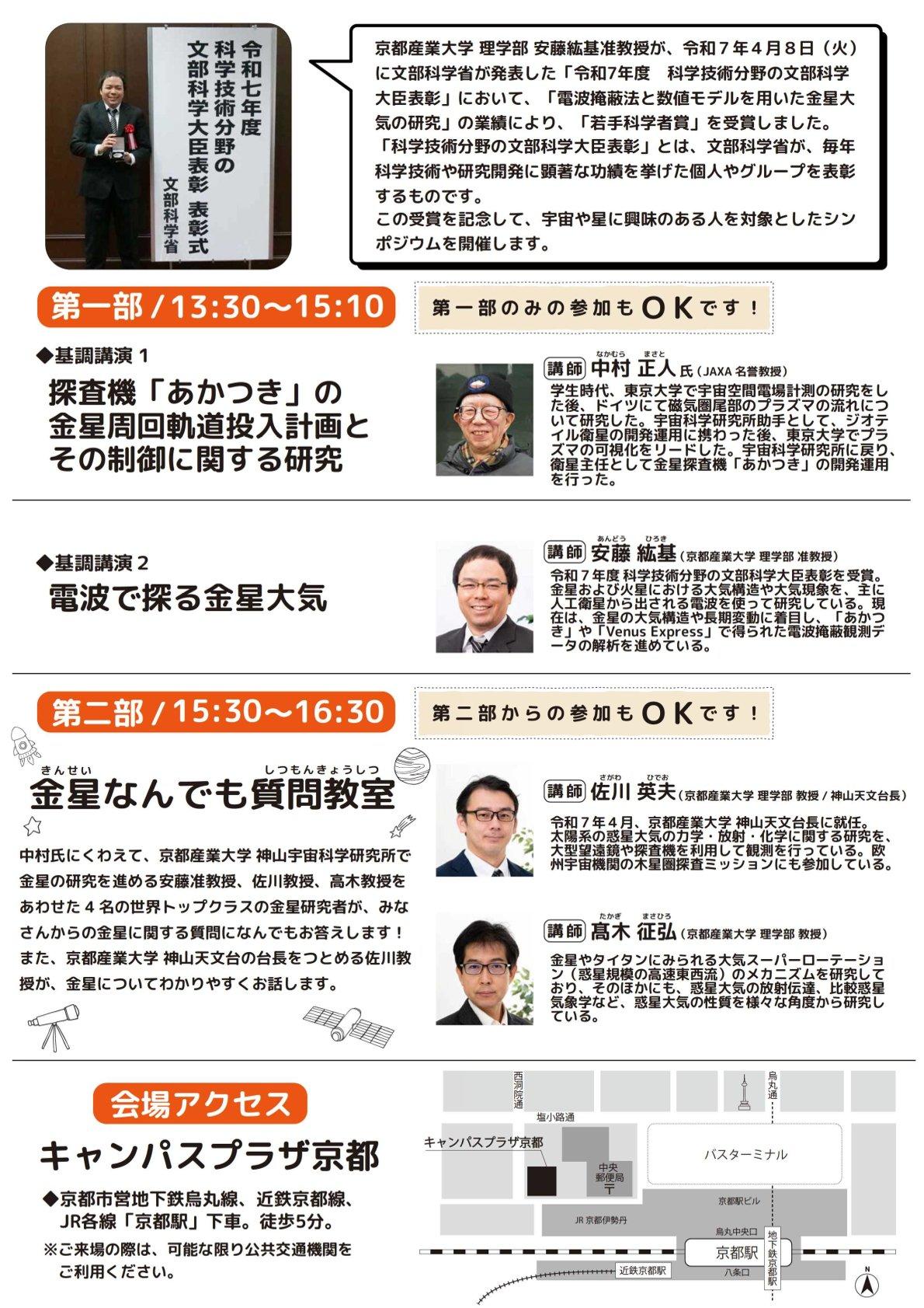 【京都産業大学】理学部 安藤 紘基 准教授 文部科学大臣表彰受賞記念シンポジウム「金星のことなら京産大/理学部」を開催