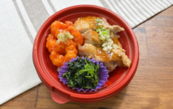 焼き油淋鶏&エビチリ玄米入りDON
