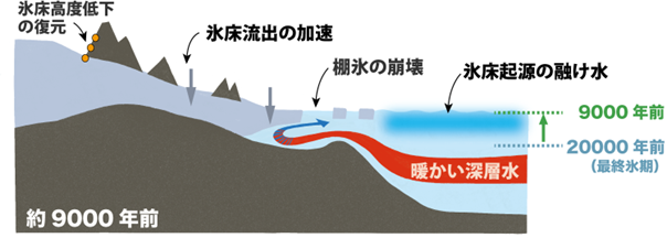 南極氷床の融解がさらなる融解を呼ぶ ― 9000年前に起きた南極氷床大規模融解の原因解析から、将来、南極で起こりうる連鎖的氷床融解を提唱 ―