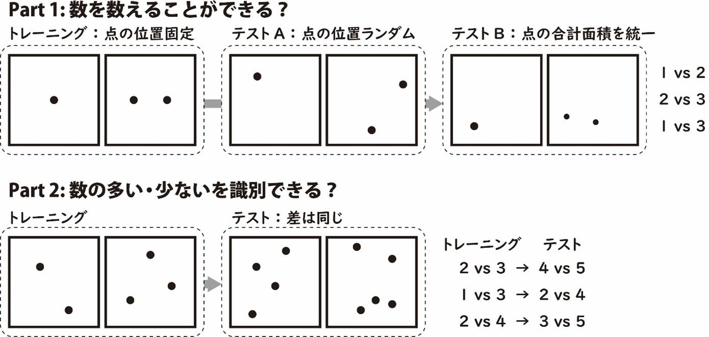 ・絶対的な数の識別だけでなく、数の大小関係に基づいた比較判断もできる。