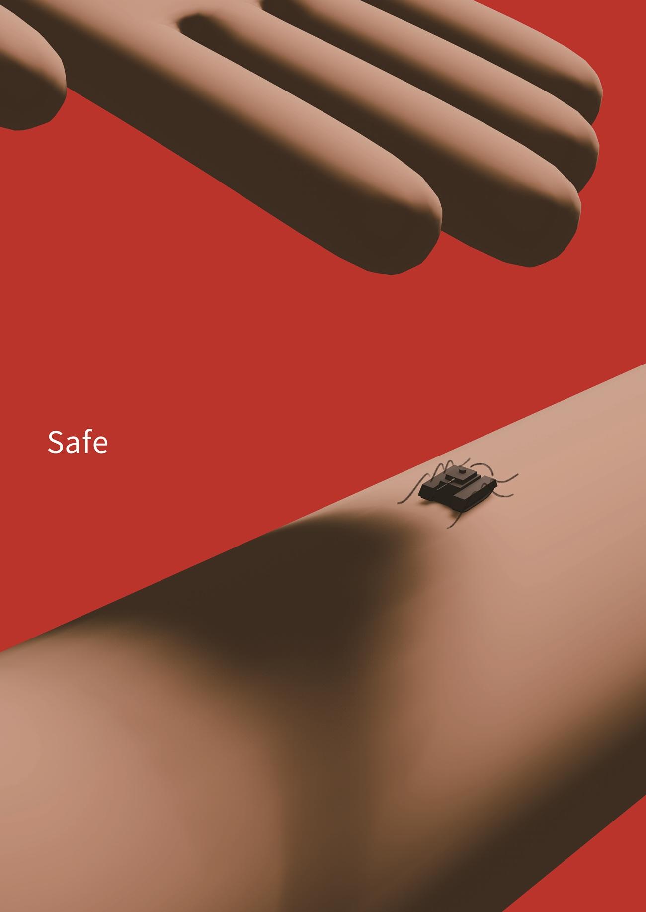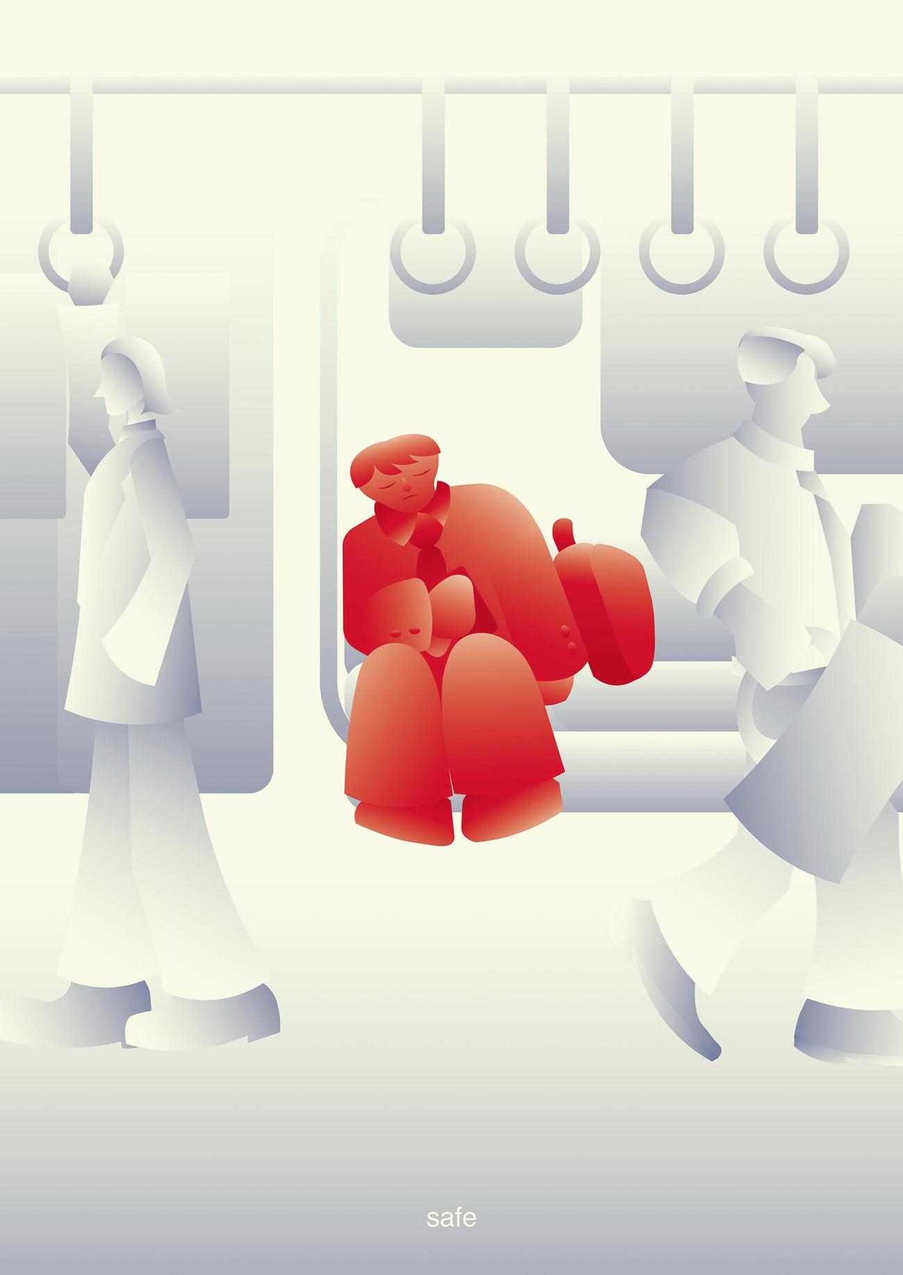 金賞を受賞した八十島さんは、「今回このような賞をいただけたことに、驚きと喜びを感じています。赤い光は暗闇のなかで光り、緊急時周りがよく見えない我々に、安心感をもたらしてくれます。その存在感をモザイクの中の光として描くことで、SAFEを表現しました」と話す。