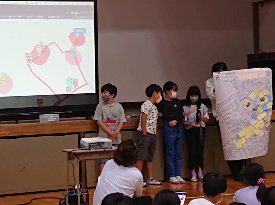 9:10~11:00(110分) ・まち歩き開始(約2.5キロ)、小学校に戻る