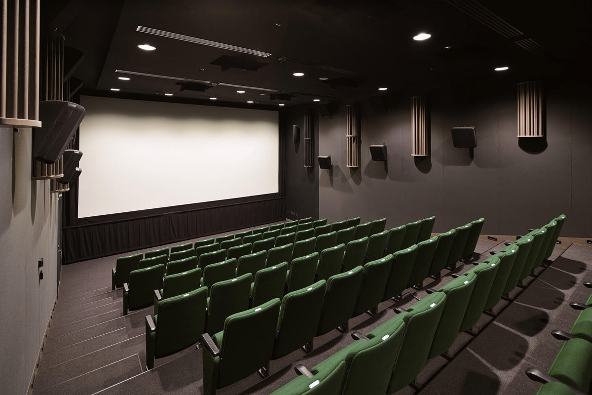 上映会が開催されるアニメーション学科専用施設のマイブリッジシアターは、劇場仕様のデジタルシネマプロジェクターを備え4K上映が可能で、音響設備帯は立体音響(11.1ch)を備えている。
