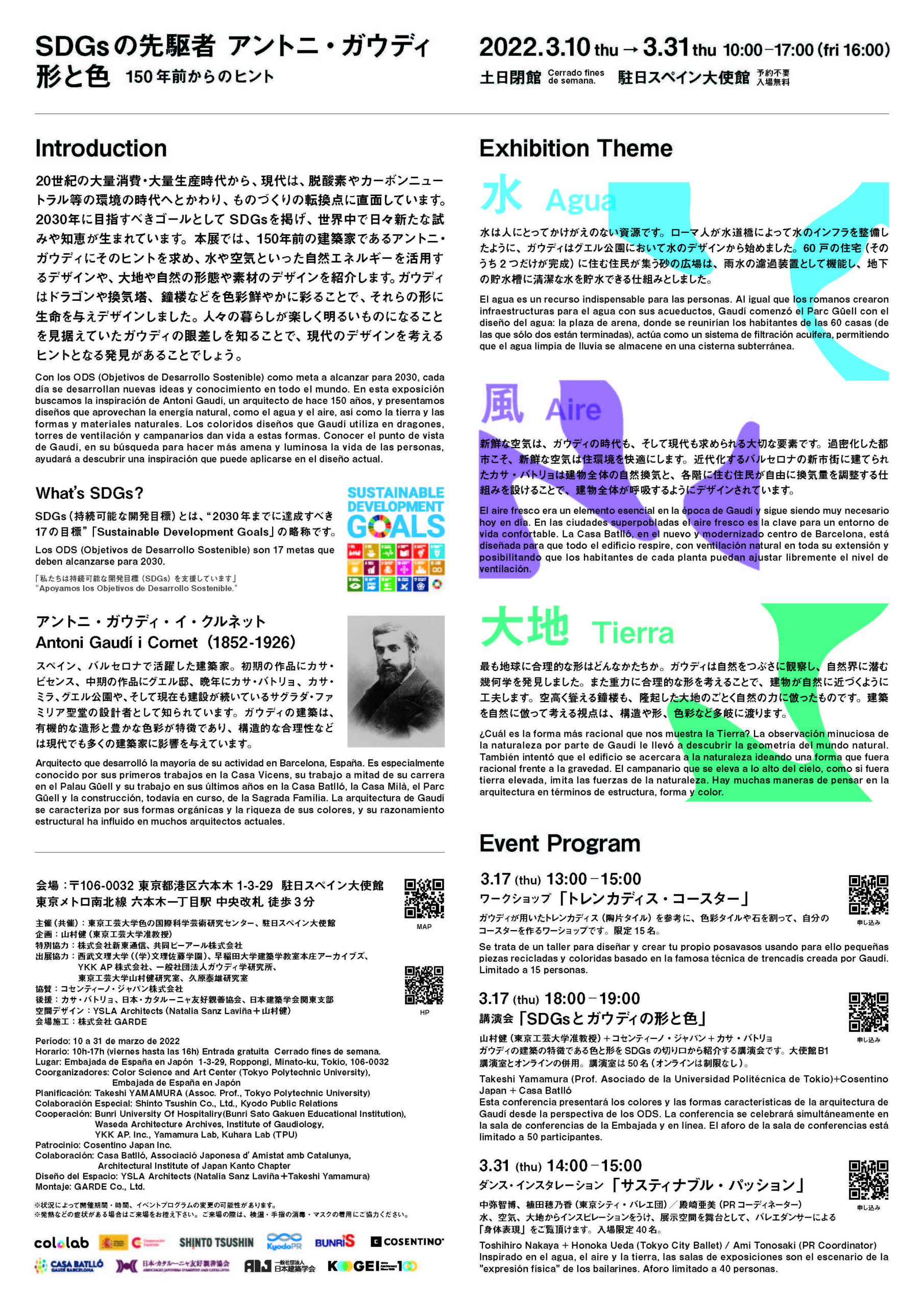 ・後 援 : カサ・バトリョ、日本・カタルーニャ友好親善協会、日本建築学会関東支部