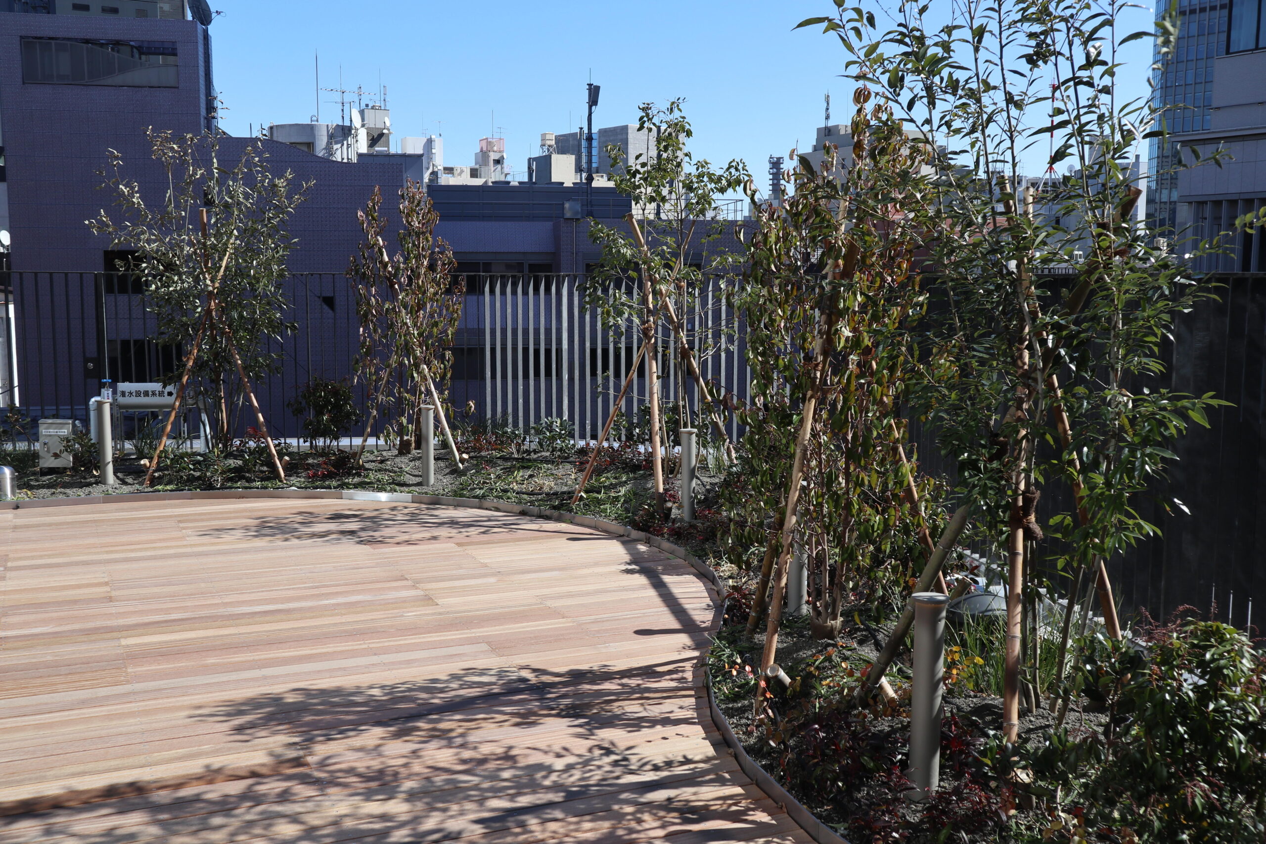 既存の3~5号棟が建ち並ぶ東京都千代田区平河町2に完成した新2号棟は、鉄筋コンクリート造り5階建て、延べ面積約1900平方メートル。教室は全9室で、アクティブラーニングやパフォーマンス系の授業にも対応可能です。また、学生ラウンジやルーフテラスなど、仲間と交流できる開放的なスペースも設けています。5階の教室には「地域コミュニティースペース」としての機能を加え、城西国際大学と協力協定を結んでいる地元町会に活用いただきます。