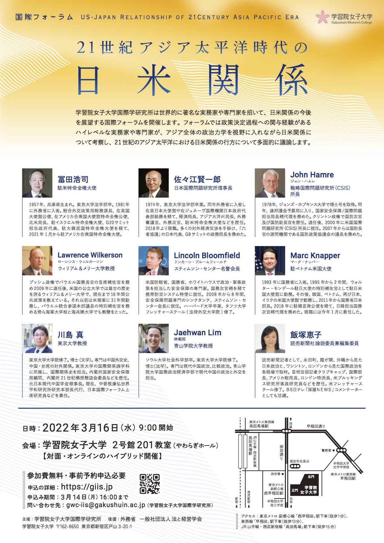 3月16日 国際フォーラム「21世紀アジア太平洋時代の日米関係」を開催 — 学習院女子大学 国際学研究所