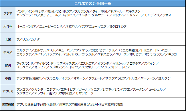 合格者は指定された研修を終えると間もなく内定した各国の在外公館に赴任し、原則2年の任期の中、さまざまな環境の下で学んだ外国語を生かし、その国で外交に携わる稀少な経験を積むことになります。