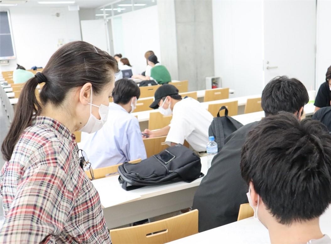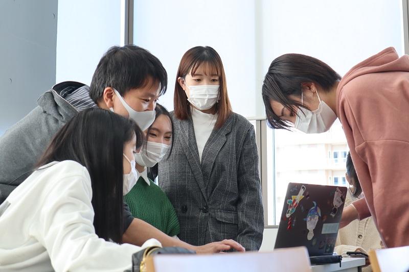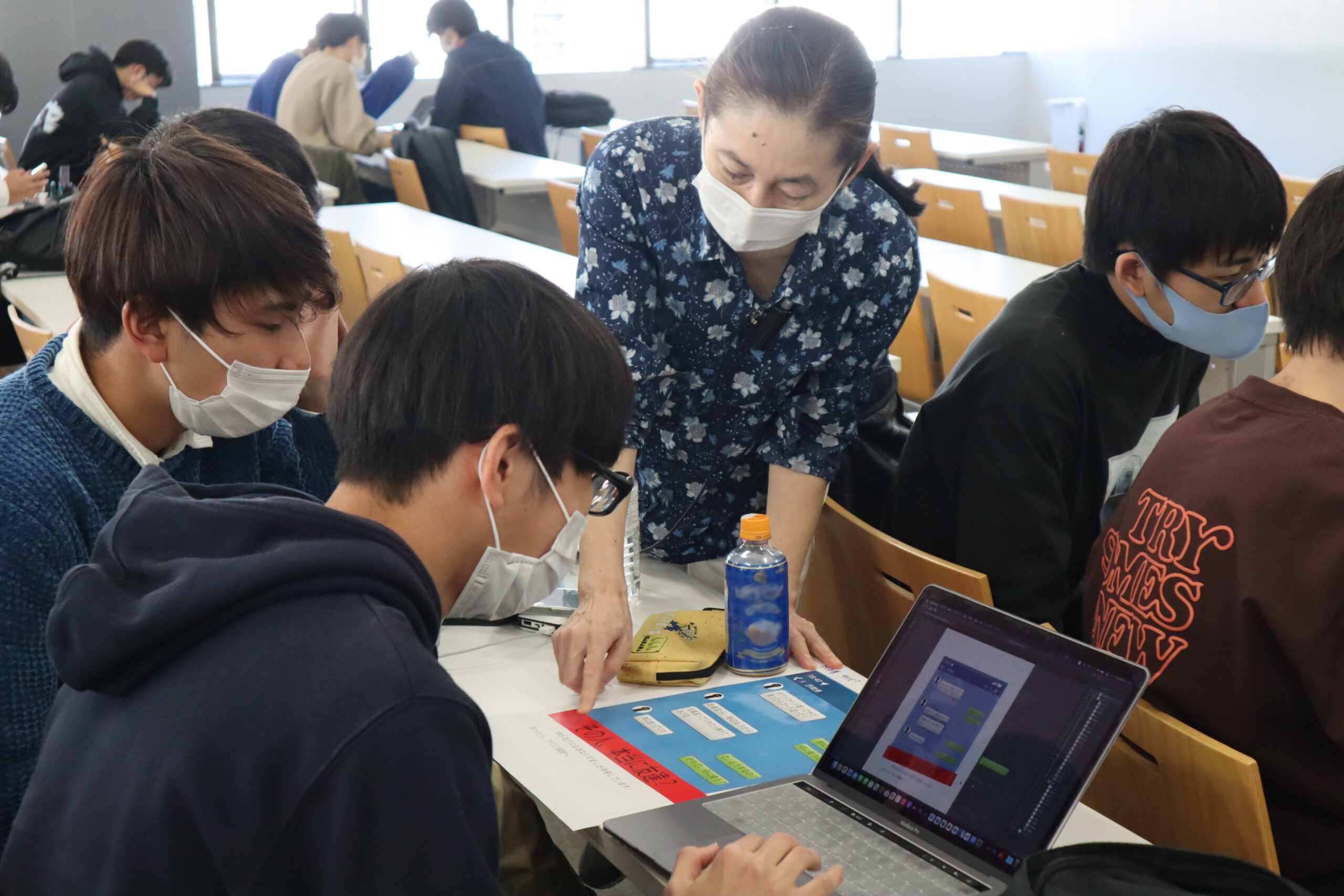 特殊詐欺犯罪防止ポスターの制作は、メディア文化コース1年生の後期授業「フレッシュセミナーIB」内で計4回にわたり実施した。初回は野方警察署から特殊詐欺犯罪についての講義を受け、特殊詐欺にはさまざまな手口があること、身近な犯罪であることを学び、グループに分かれてポスターのイメージを共有。学生たちはグループで意見を出し合いながら、真剣にポスター制作に取り組んだ。