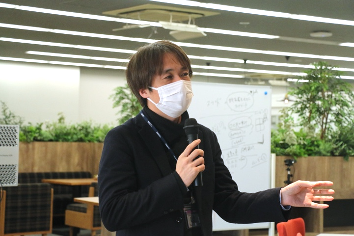 授業の仕上げとして、5班に分かれた学生たちはそれぞれが設定したテーマや仮説に基づき、ディスカウントストアの実際のID-POSデータを分析した結果をグループワークを通じてまとめ、発表しました。発表にあたっては人工知能科学研究科に在籍する大学院学生や担当教員らから講評があり、仮説の設定やデータ分析にあたって具体的な手法の改善点などについてフィードバックがありました。