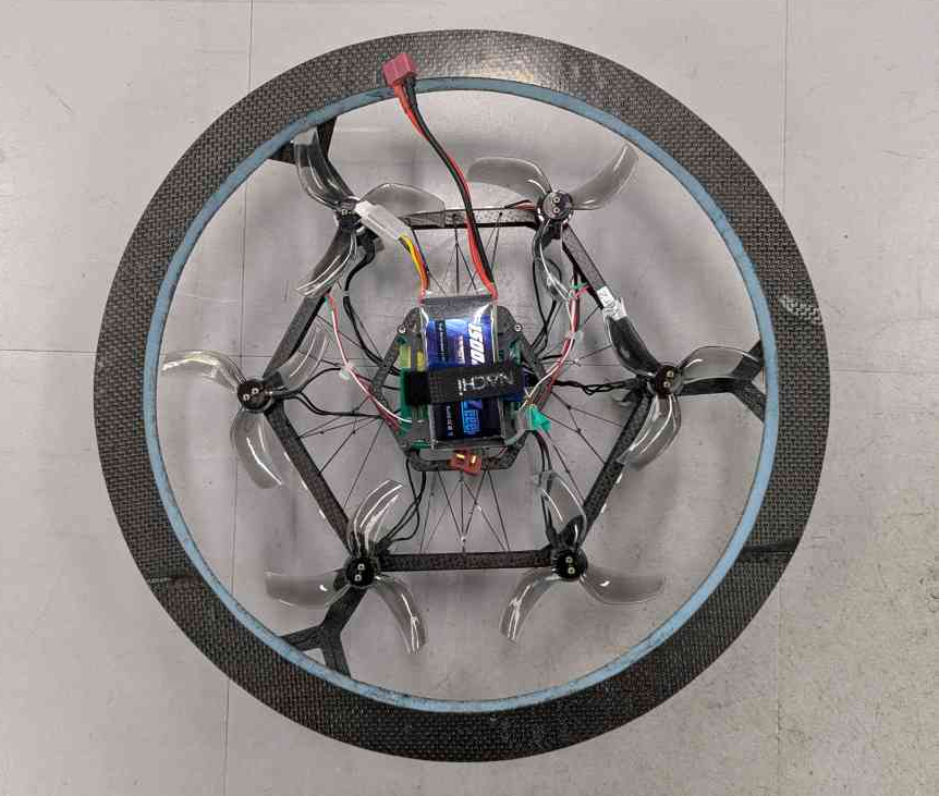 ・円形プロペラガードはスタイロフォームをコア材とし、スキン材にCFRPを使用、軽量化を図った。