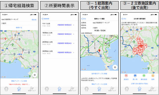 ※2:芝浦工業大学(土木工学科楽准教授 モビリティ・インフラ研究室)が開発した、「リアルタイムの情報提供による渋滞回避と観光行動の誘発に関する実証実験」用のアプリケーションです。