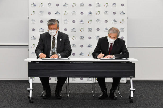 学校法人札幌大学は、北海道白老郡白老町の「ウポポイ(民族共生象徴空間)」を運営する公益財団法人アイヌ民族文化財団と連携協力協定を締結し、2022年1月13日、ウポポイにて調印式が行われた。