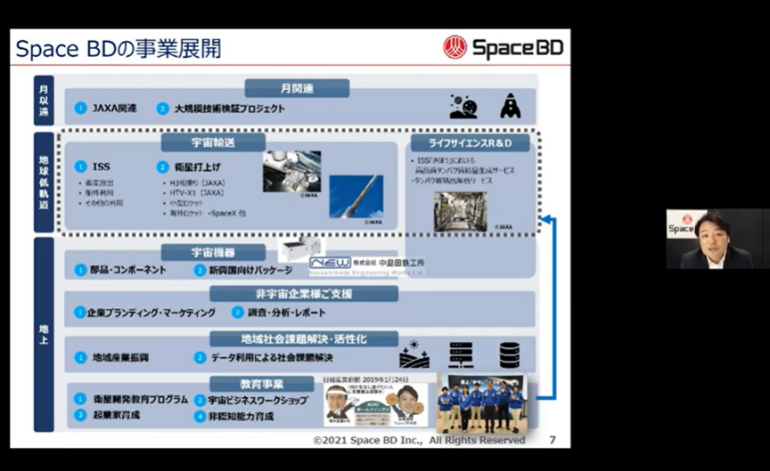 オンライン授業にてSpace BDの共同創業者であり、代表取締役社長を務める永崎から、Space BDの事業紹介と永崎自身が独立を決断しSpace BDを創設するまでの出会いやきっかけ、そこにある想いをお話しました。
