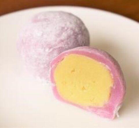 生地は紫波町のもち米「ヒメノモチ」に国産の紫芋パウダーを練り込み、餡には日野産のさつま芋に日野市内の豆腐店「とうふ処 三河屋」の豆乳を加えて作ったスイートポテトの餡です。