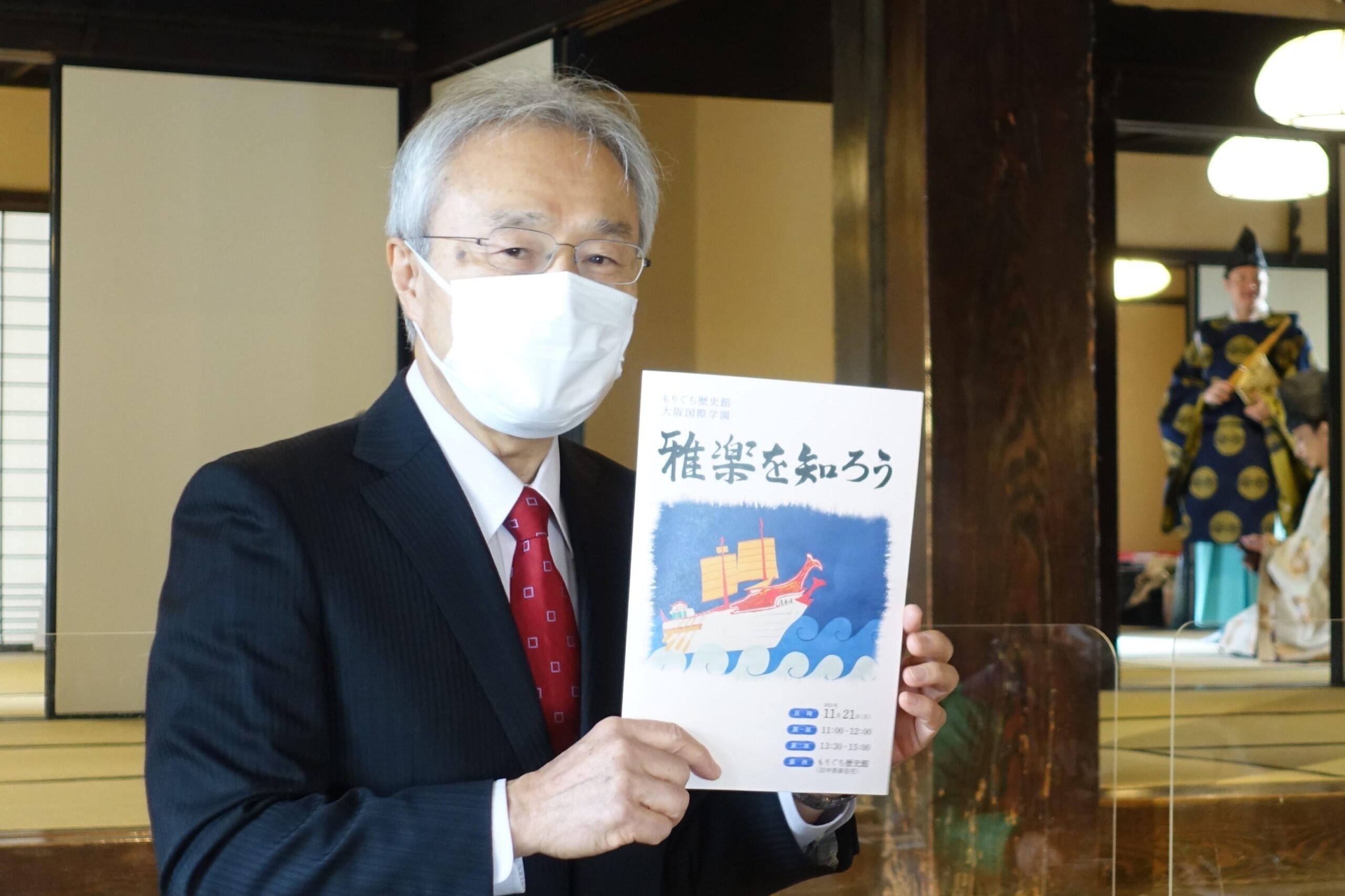 大阪国際学園(大阪府守口市、理事長:奥田吾朗)芸術文化教育センターは、芸術文化の普及と地域交流を目的として、雅楽師による演奏会「雅楽を知ろう」を開催しました。第一部は守口市民の方々を、第二部は『もりぐち国際交流友の会』と守口市在住の外国人の方々を対象として、本学園の所在地である守口市の指定有形文化財に指定されている在郷武家屋敷「もりぐち歴史館」で行いました。演奏会では、大阪国際大学の留学生らが地域の方々との国際交流も兼ねてボランティアスタッフとして参加し、日本の伝統芸能を実体験として学びました。