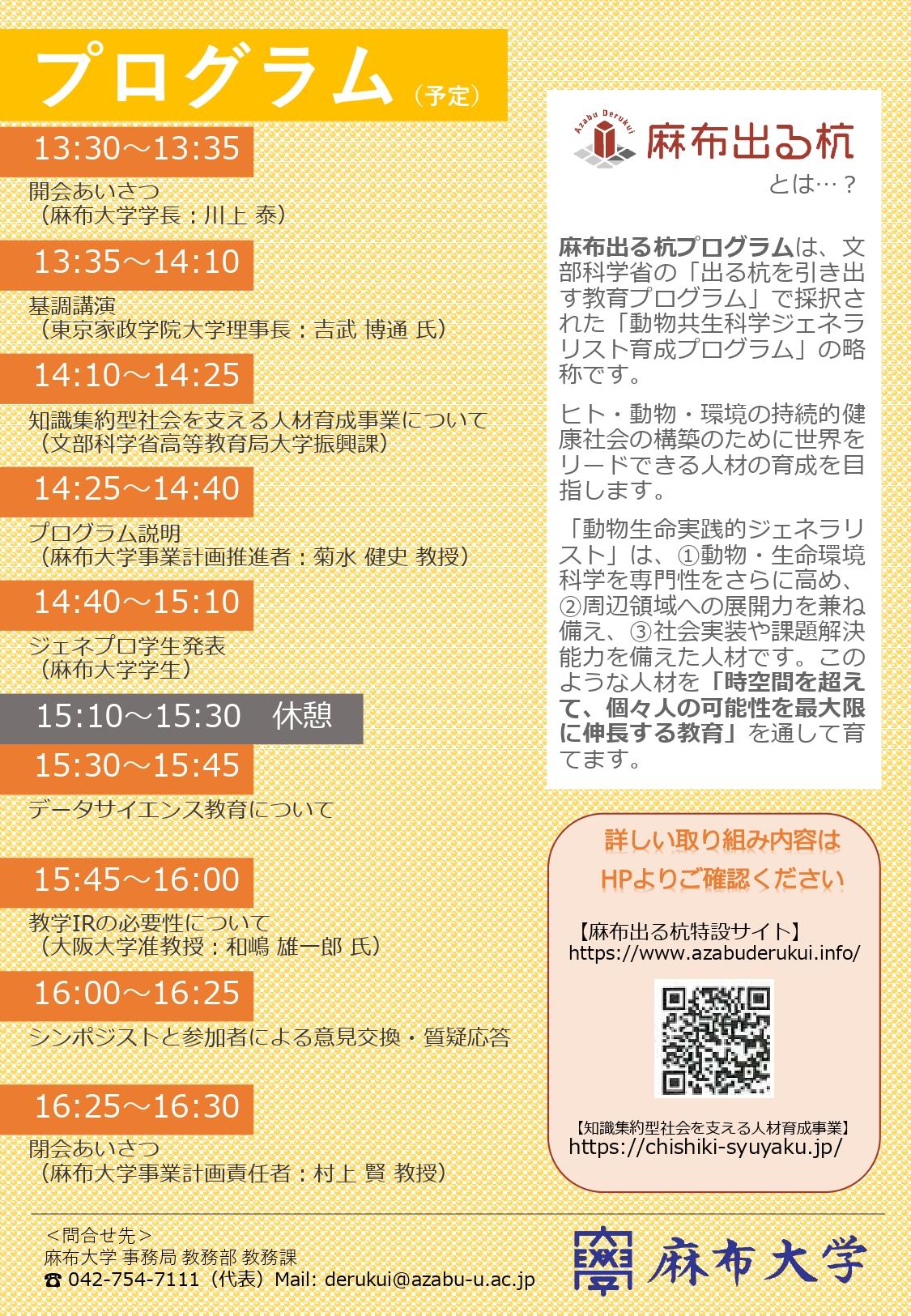 麻布大学は、「麻布出る杭シンポジウム~動物共生科学ジェネラリスト育成プログラム~」をZoomウェビナーにて、令和4年1月21日(金)13時30分から16時30分に開催します。