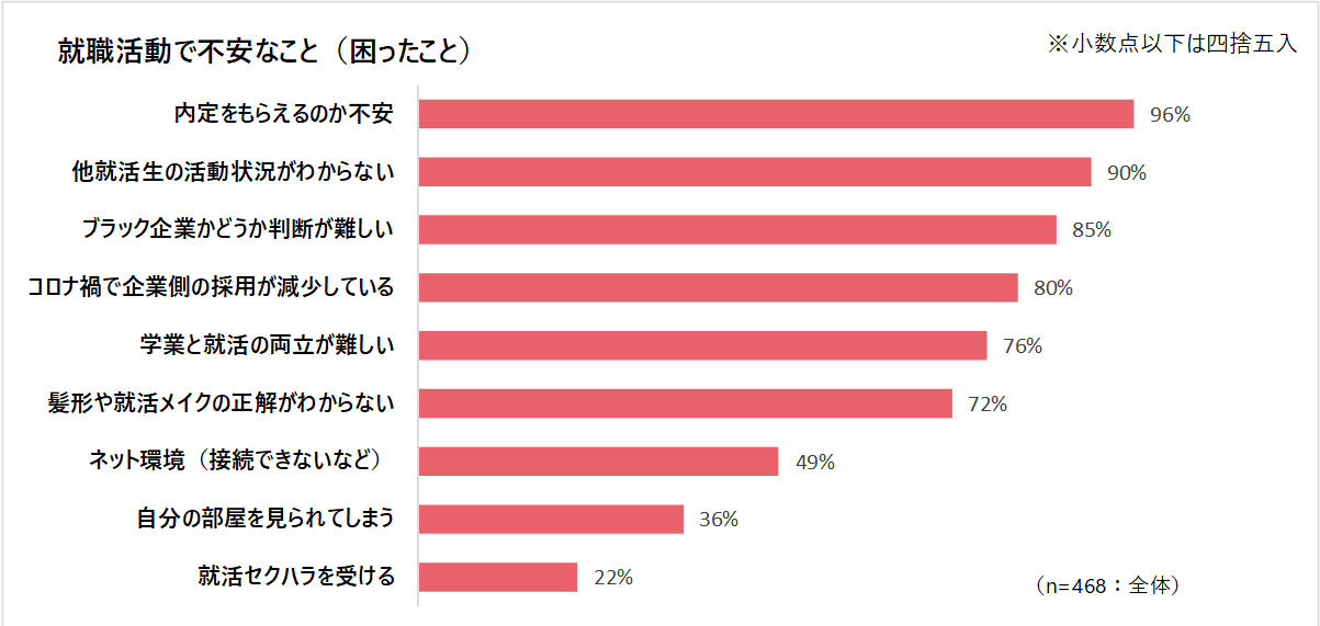 「内定をもらえるか不安」「ブラック企業かどうかの判断が難しい」などの声も