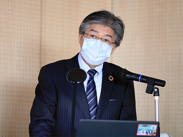 プレス発表会冒頭、神奈川大学長 兼子良夫は、SDGsに取り組む意義について「SDGsに向き合うことは、”持続可能な社会を創生する人材の育成”につながるとし、本学の理念である”教育は人を造るにあり”は、SDGsの精神に符号する創立者の思いでもある」と説明。