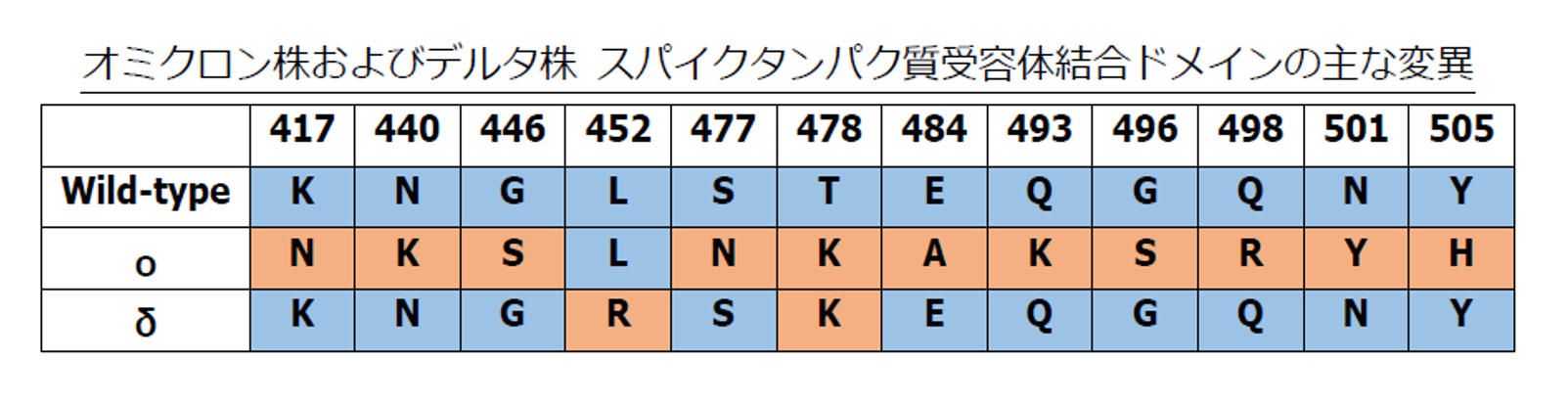 11月下旬に南アフリカで初めて報告されたオミクロン株(B.1.1.529系統)は、スパイクタンパク質の受容体結合ドメインに15個の変異をもち、感染・伝播性、抗原性の変化が懸念されることから、WHOはこの株を懸念される変異株(Variant of Concern; VOC)に分類しています。我が国においても、2021年12月8日現在で4名の感染が確認されており、感染拡大の防止に向けて、検査体制の確立が喫緊の課題となっています。