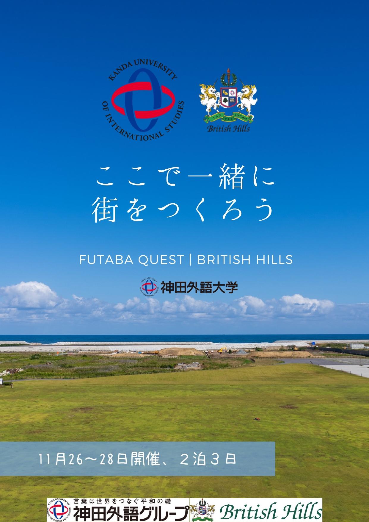 福島県羽鳥湖高原にある、神田外語グループの英語研修施設「ブリティッシュヒルズ」(福島県岩瀬郡/代表取締役社長:森 雄三)は、同グループの神田外語大学および福島県双葉町と連携し、神田外語大学の学生を対象とした2泊3日の探求学習「FUTABA(フタバ) QUEST(クエスト)」を実施します。東日本大震災から10年が経過した現在も被災地の復興活動は終わっておらず、災害の記憶を風化させず次世代に繋いでいくことは、同県にブリティッシュヒルズをもつ神田外語グループとして取り組むべき使命と考えています。この度実施するツアーは、福島県双葉町の被災地を実際に歩き、地元住民の方々と交流をすることで、現在進行形の復興活動の現状を体感し、風評被害や地元コミュニティーの復活など、課題解決のためのアクションやアイデアを考えるプログラムとなっています。この度の実施を皮切りに、今後はさまざまな学校・団体への提供を考えていく予定です。