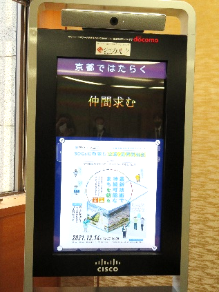 ・専用のデジタルサイネージを学内に設置し、各種イベントや京都府内の企業情報等の提供を行う
