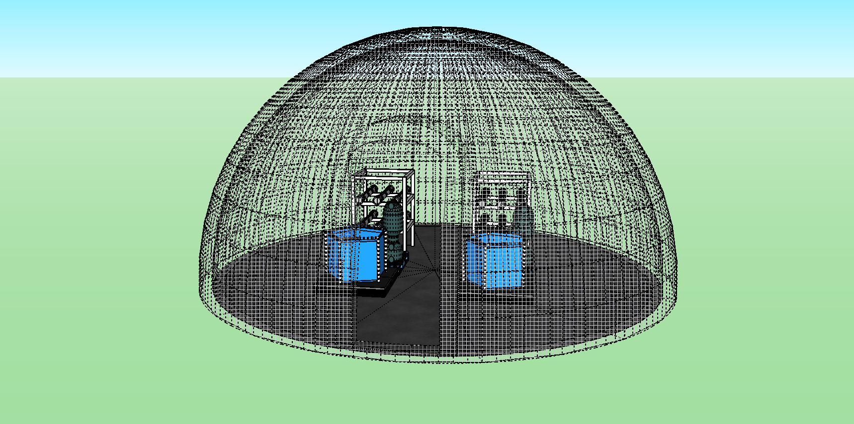 野菜ベッド、魚タンク、貯水タンク、生物・物理濾過槽、ポンプ、ブロワ、LED ライト等、監視カメラ、計測装置、制御盤