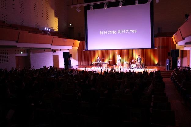 第二部では、キャンドルが灯された会場内で音楽ライブが行われ、会場は一体感に包まれながら復興支援を考える時間となりました。最後に参加者は、被災地に思いを馳せ、キャンドルに「頑張れ」に代わる応援メッセージを残しました。
