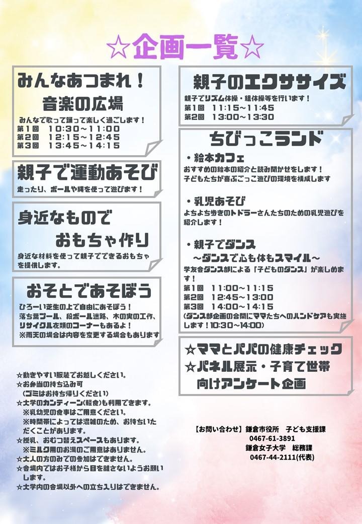 本企画は、鎌倉女子大学と鎌倉女子大学短期大学部の学生が中心となって実施する「地域子育て支援」企画です。