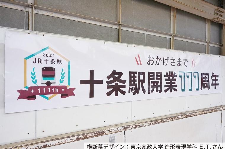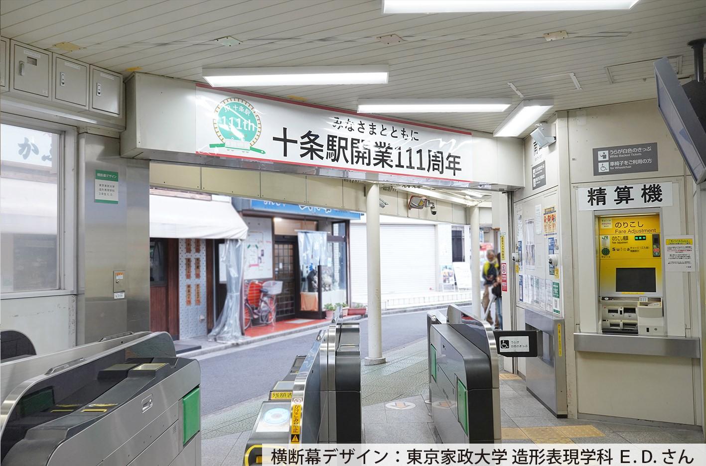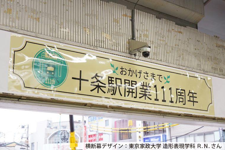 東京家政大学造形表現学科の学生が十条駅開業111周年記念横断幕をデザイン