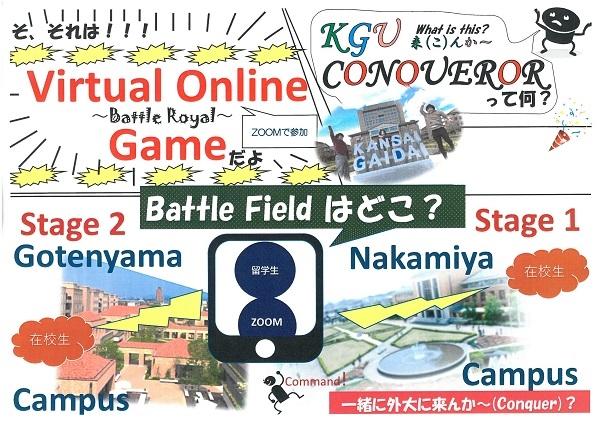 関西外国語大学(大阪府枚方市)では、学生とZOOMで参加する留学生※がチームを組んでクイズに挑戦するイベント「KGU CONQUEROR(来んか~)~Battle Royal~」を10月28日~11月5日に中宮キャンパスと御殿山キャンパス・グローバルタウンで開催します。
