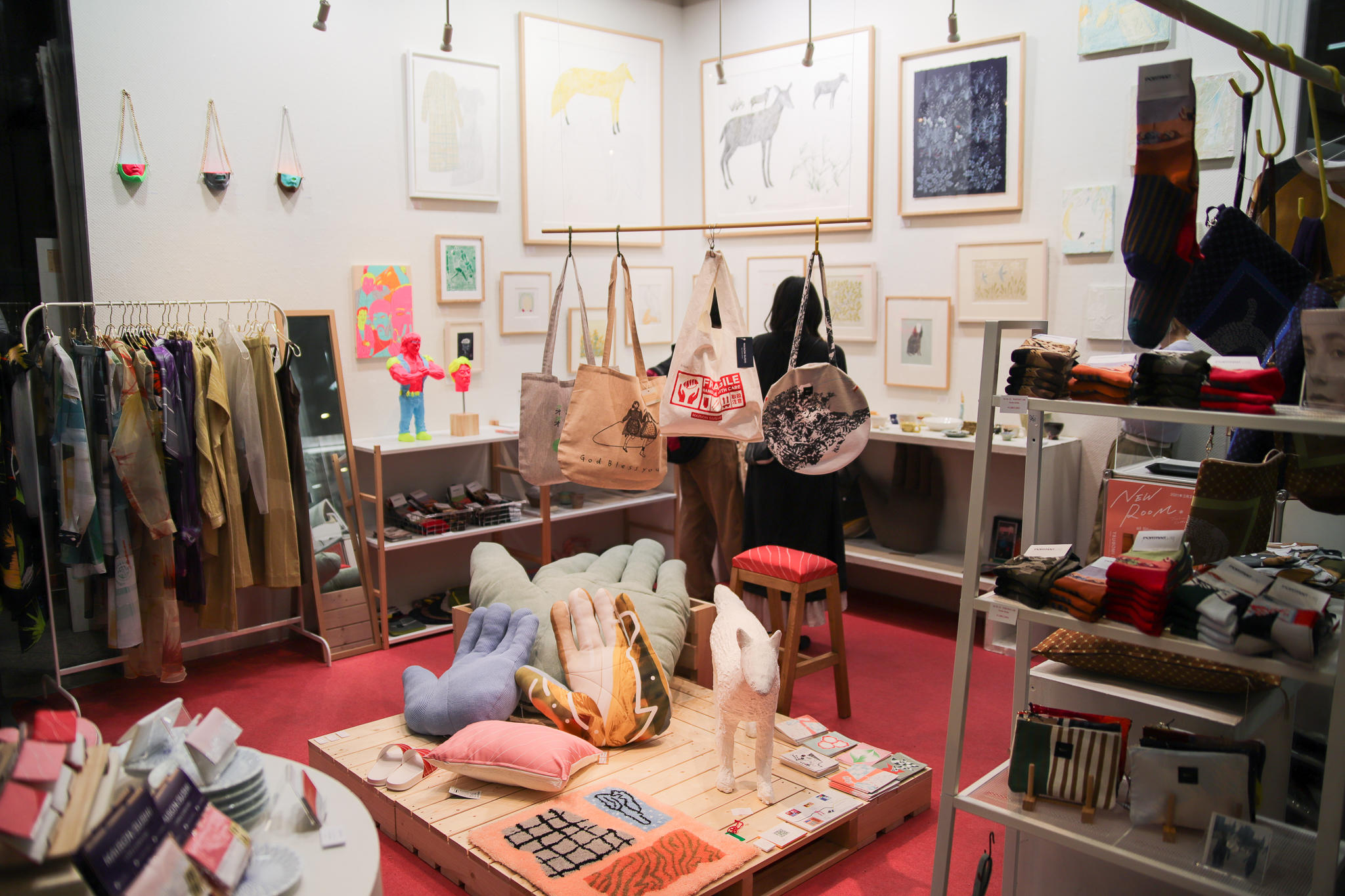 2017年からスタートした、東京造形大学が主催する若手育成支援プロジェクトです。本学在学生、卒業生の中から才能あふれる作家や異彩を放つブランドを紹介することを目的とし、海外のミュージアムショップをはじめ、国内外の様々な場所で開催してきました。作家の作品発表の場として、ギャラリーや画廊といった場所以外に百貨店やミュージアムショップなど新たな販路を開拓します。アート作品だけでなく、個性的なアクセサリーやバッグ、服やスカーフなど様々なアイテムの展示販売を行います。