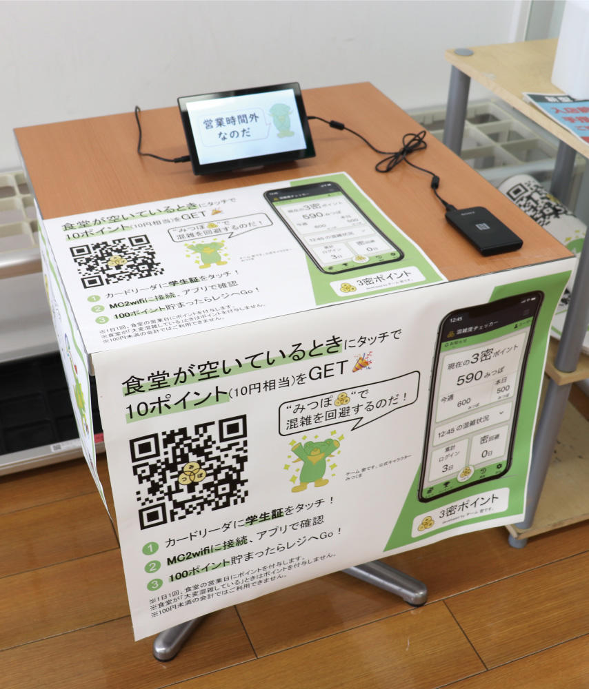● 学内食堂の混雑予報システムと、学生の流れを誘導するポイントサービスを学生たちが考案、運用