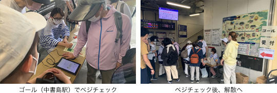 ゴール地点の中書島駅では、まちあるきを終えた方を対象に『ベジチェック』が行われた。『ベジチェック』とはカゴメ(株)によって開発された測定器のことで、野菜摂取レベルと推定野菜摂取量を計測することができる。
